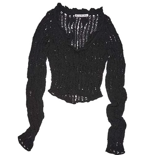 L’expérimentation toujours au coeur du propos de la maison ACNE, c’est un pull en maille diamant qui figure le savoir-faire et l’approche stylistique ACNE. Soit celle d’une maison en phase avec l’idée de léguer des pièces qui figurent l’individualité.