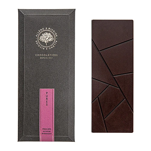 Description : Les fèves qui viennent de San Martin au Pérou, offriront au chocolat des flaveurs de fruits noirs et cerises, ainsi qu’une douce amertume. Dans cette tablette, le chocolat noir est travaillé avec du sucre de bouleau.