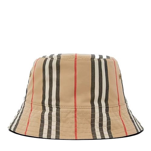 Réversible, ce bob en coton confectionné en Italie est doté d’un endroit à rayures iconiques et d’un envers de couleur unie.