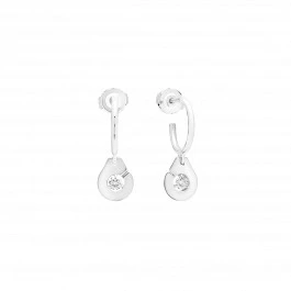 Description : Créoles Menottes dinh van R8 en or blanc et serties de diamants. Les précieuses attaches de la collection Menottes dinh van se déploient en pampilles, accueillant en son centre un diamant sublimé comme suspendu.