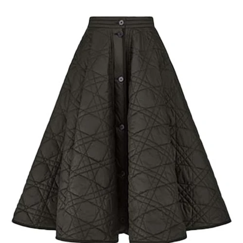 Maria Grazia Chiuri revisite un motif iconique de la Maison en proposant la jupe à effet matelassé Macrocannage. Confectionnée en taffetas technique noir ultra-léger, elle se distingue par une silhouette mi-longue et évasée complétée d’une fermeture boutonnée, de poches zippées et d’une bande élastiquée au dos. Cette jupe mi-longue se portera avec la veste assortie pour créer un total look.