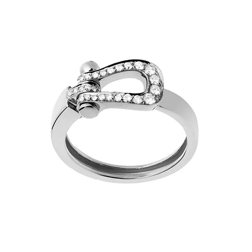 Description : Bague Force 10 moyen modèle en or blanc et diamants blancs. Or blanc 750/1000e. Largeur de la bague: 3,8 mm, 27 diamants blancs taillés brillants: 0,20 carat* / GVS.