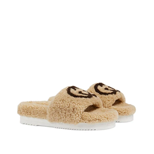 Description : Des modèles hybrides enrichissent l’univers Gucci en associant des matières et des styles surprenants. Se jouant des attentes, cette paire de mules est confectionnée en laine mérinos marron clair dans une forme évoquant les pantoufles. Le monogramme de la Maison fait écho au logo.