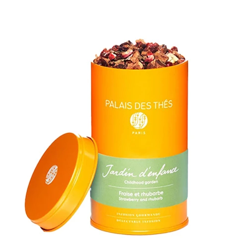 Une infusion qui porte aux réminiscences — Palais des Thés offre dans Jardin d’Enfance le goût de la fraise et de la rhubarbe qui évoque en nous les douceurs de nos tendres souvenirs.