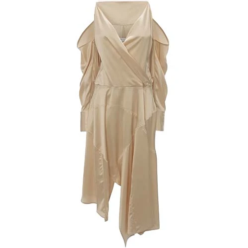 Espiègle et jamais à une gimmick kitsch près, JW Anderson coupe ici en biais les pans de cette robe asymétrique, fluide et sensuelle.