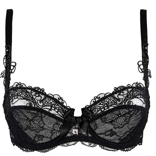 Soutien-gorge corbeille souple à armature en dentelle de Calais à la découpe horizontale.