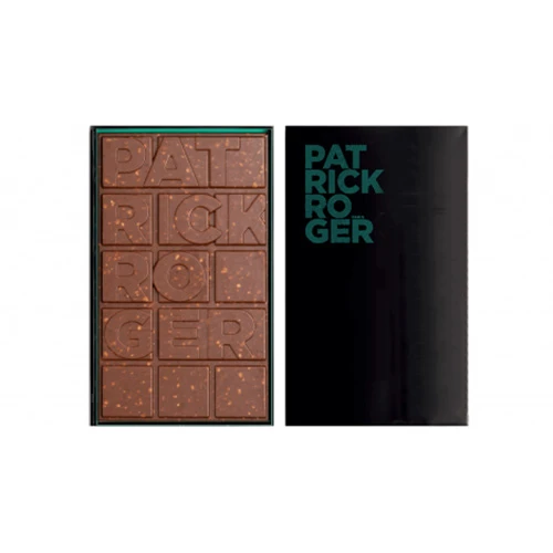 Le turquoise des boîtes Patrick Roger renferme les plus délicieux des chocolats. L’imagination de ce célèbre maître chocolatier ne connaît en effet aucune limite, tant son savoir-façonner le délice n’a lui même aucune contrainte. C’est dire les saveurs qui se dissimulent dans cette tablette de chocolat au lait.
