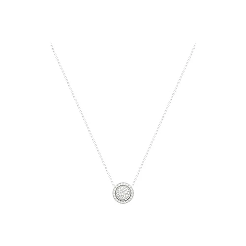 Description : Vivez vos passions avec ce pendentif Piaget Possession en or blanc serti de diamants taille brillant. Une pièce à porter près du cœur et à imprégner de votre style, de votre expression et votre lumière. Ce pendentif de luxe possède une demi-sphère blanche tournante centrale qui peut se porter de deux façons : sur le côté entièrement pavé ou en dévoilant le côté gravé. Vous pouvez le personnaliser avec un message porte-bonheur, les initiales de l’être aimé, un symbole ou encore une date particulière.