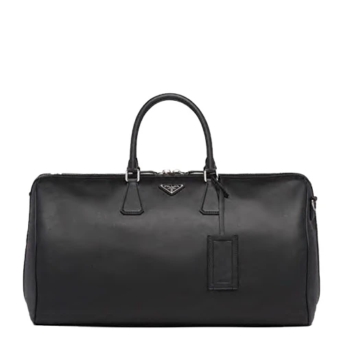 Description : Cet élégant sac de sport en cuir Saffiano avec fermeture à glissière sur tout le tour et bandoulière en nylon affiche un design rigoureux. Il est orné d’un porte-nom en cuir et d’un verrou en métal agrémenté du logo lettering.