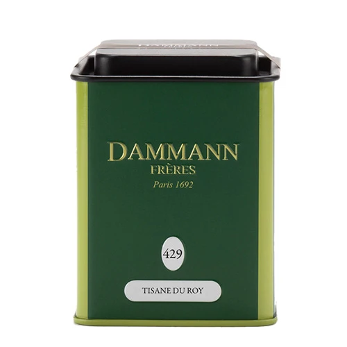Fondée en 1925, la maison de thé Dammann Frères trouve en réalité ses racines à l’époque de Louis XIV — le roi, ou plutôt le Roy ayant octroyé « le privilège de vendre, de faire vendre, et débiter seul, à l’exclusion de tous les autres, tous les cafés […], le thé… » Cette Tisane du Roy rend hommage au bon goût de Louis XIV !