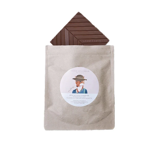 La vision épique et délicieuse de la gourmandise par Yann Couvreur distillée dans une tablette praliné coco qui s’apprécie à chaque bout de chocolat !